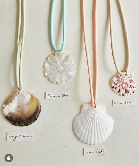 When I think of shell jewelry, I think of the original - the OG of shell-inspired design-my friend Meg Carter. We met years ago when I was working part-time in a boutique in Old Town Alexandria, and even then, she was ahead of her time. Long before shell jewelry was having a “moment,” Meg was creating wearable art from the shoreline. Her very first design? Made from her son’s hermit crab shell. The rest is history. Her pieces have been sold in some of the most exclusive boutiques and resorts around the world, and I’ve proudly collected them over the past two decades. Honestly, many of the designs you’re seeing now feel like a delayed love letter to what Meg was doing years ago. When she’s in Charleston visiting family, we catch up over coffee and I always leave inspired by her creativity, her originality, and the fact that the rest of the shell loving world is finally catching on. I’m currently loving this necklace and this one too. And these non-shell earrings? (lots of colors available) Have been in my constant rotation for years.