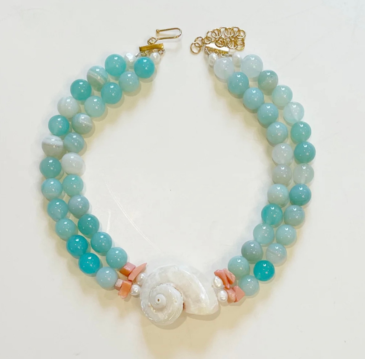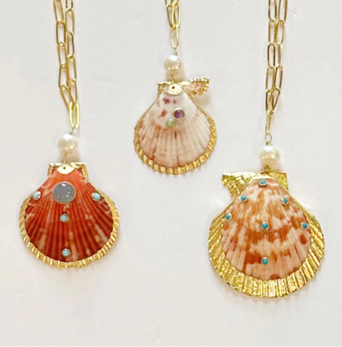 Let’s move from underneath to under the sea (see what I did there?!?) because shell jewelry is having a serious moment. But not the puka beads of your childhood. In 2025, shell jewelry has been rebranded and is chic and grown-up. It snuck up on me slowly and now I’m hooked.